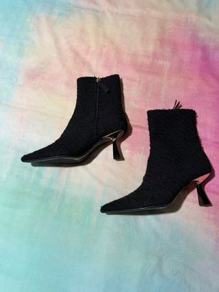 Botines de tacón fino de Zara. - Diseño de punta afilada. - Material suave al tacto.