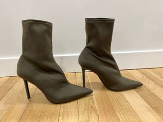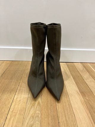 Botines de tacón alto con punta fina. - Diseño ajustado al tobillo. - Tacón de aguja. - Material elástico. Usados una vez