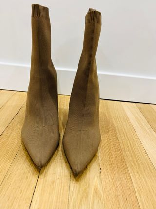 Botines de Zara en color beige, talla 41. Un básico elegante para tu armario. - Diseño de punta fina. - Tejido elástico tipo calcetín. - Tacón alto.