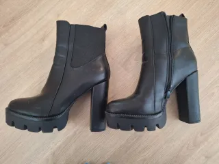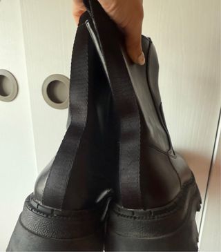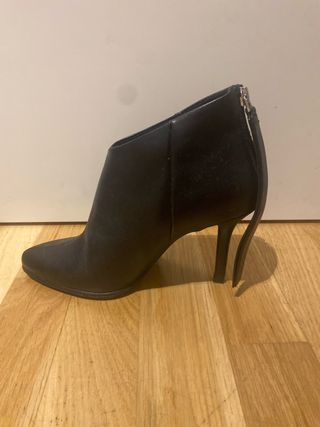 Botines de piel negros de Zara. - Diseño elegante y versátil. - Material exterior de piel. - Cierre lateral con cremallera.