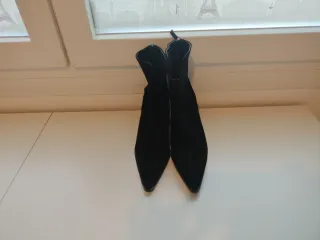 Botines de ante con cremallera lateral. - Diseño de punta fina. - Tacón de altura media. - Material de ante suave.