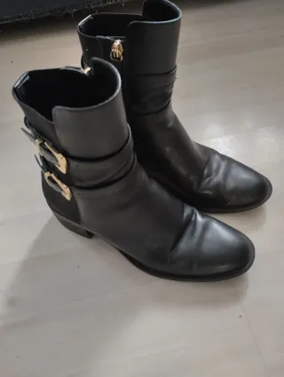 Botines con hebilla decorativa Zara T36 - Cierre lateral con cremallera. - Detalle de hebilla dorada en el tobillo. - Tacón cuadrado. Tienen algún defectillo que puede verse en la foto pero no les entra agua