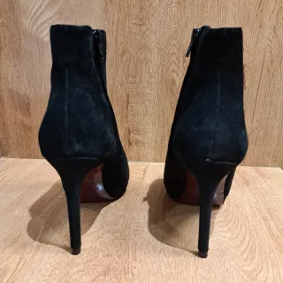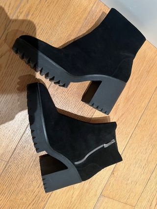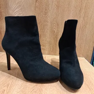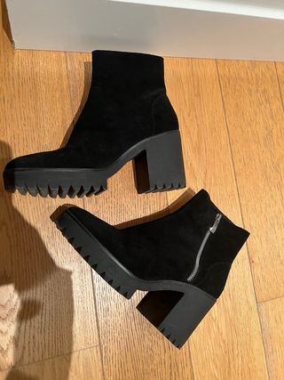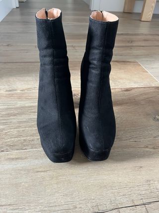 Botines de ante negro de Zara. - Tacón alto (10 cm). - Plataforma delantera (1 cm). - Cierre de cremallera lateral. - En perfectas condiciones, usado muy poco.