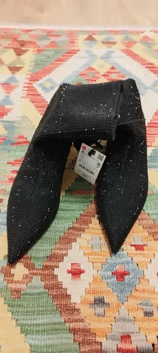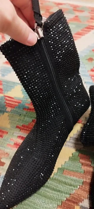 Botines de fiesta de Zara, con pedrería brillante y un diseño elegante. Ideales para ocasiones especiales. - Cierre con cremallera. - Tacón fino. - Punta afilada.