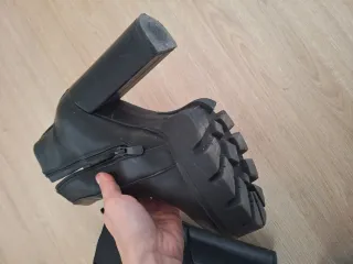 Botines de piel negra con cremallera delantera. - Diseño moderno y elegante. - Suela gruesa y resistente. - Cierre de cremallera frontal.