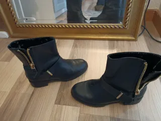 NUEVOS! Nueva colección! Los vendo por error de talla y ya no tengo la etiqueta... No estan rebajados en la web de zara (precio original 35,95€) Puestos dos ratos, tallan grande, es la talla 38 pero como si fuera para talla 39. Botines de tacón de Zara. Color negro Cierre lateral con cremallera. Muy cómodos y calentitos. Por dentro se sienten acolchados. #zara #botines #moda #negro