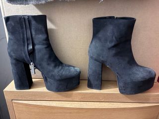 Botines de ante color marrón de Zara. - Tacón grueso. - Cierre de cremallera.