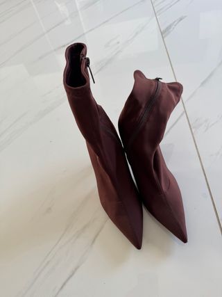 Botines de tacón fino de la marca Zara. - Diseño elegante y moderno. - Cierre de cremallera lateral. - Punta afilada.