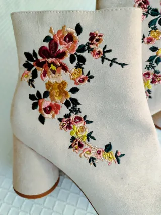 Botines Zara bordados florales beige