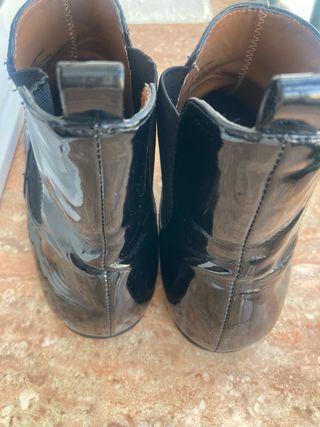 Botas de charol con un acabado brillante. - Diseño tipo botín. - Paneles elásticos laterales para facilitar el calce. - Punta fina.