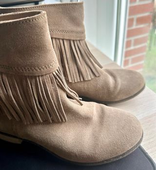 Botines de serraje con flecos. Son muy bonitos y estilosos pero a mí me hacen daño. No quise cambiarlos porque me encantan, pero cuando intento ponérmelos estoy incómoda.