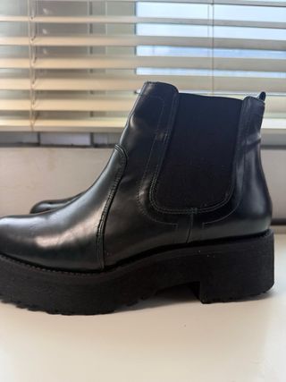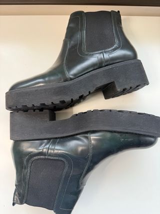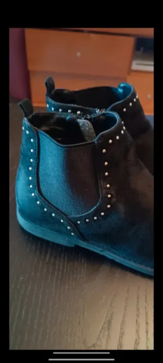 Botines de estilo casual. - Cierre con cremallera lateral. - Suela de goma antideslizante. - Interior forrado para mayor comodidad. Usada en dos ocasiones, es un 35 amplio. 🚨No negocio precio 🚨 ➡️Envío rápido 📦 ➡️Entrego en mano en cuatro caminos, coruña, no me desplazo a otras zonas.