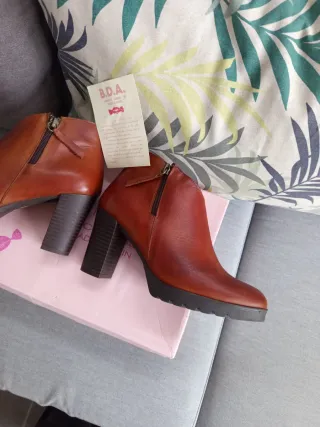 Botines de piel con tacón de 8 cm y plataforma 1,5 cm de la marca B.D.A. Nuevos a estrenar. Comprados por más de 100€. Los vendo por no poder usar tacones. No los he estrenado. Piel auténtica tanto exterior como interior. Dos cremalleras laterales, una de adorno y otra con abertura. Hago envíos - Material: Piel - Cierre con cremallera lateral - Tacón grueso - Diseño elegante