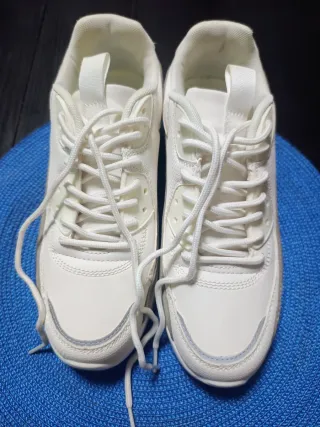 Botines de mujer en color blanco. - Diseño moderno y versátil. - Cierre con cordones para un ajuste seguro. - Suela cómoda para el día a día. Se usaron un par de veces se ofrecen lavados y listos para volver a ponerlos