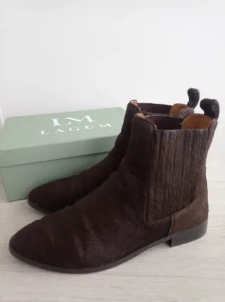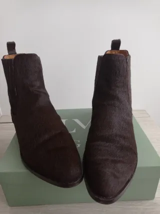 Botines de pelo de potro con un diseño elegante. - Material exterior: pelo de potro. Interior en piel. Plantilla de piel acolchada. - Diseño de botín Chelsea con goma ajustable. - Puntera redonda. - Tacón 2'5cm - Perfectamente válidos para lluvia - Alta calidad. Fabricados en España - Usados solo una vez. Precio original 160€.