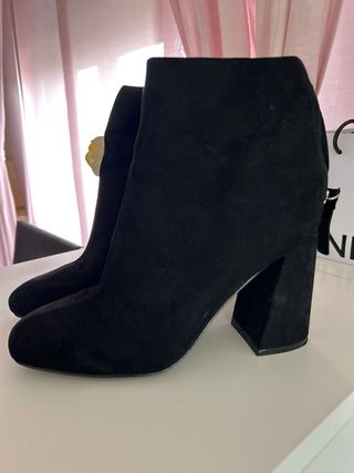 Botines de tacón de H&M en color negro. - Material de ante. - Cierre de cremallera lateral. - Tacón alto.