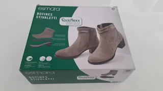 Botines de mujer de la marca Esmara, talla 40. Un calzado cómodo y moderno. - Diseño tipo botín. - Cierre de cremallera lateral. - Detalle de perforaciones decorativas. Nuevos, con etiqueta. La caja tiene algún desperfecto por el almacenaje