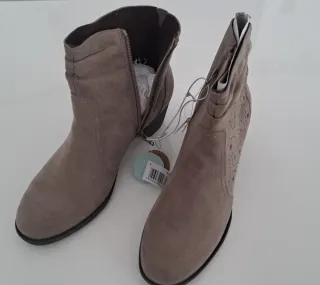 Botines Zara Tacón Ante tachuelas Caqui Talla 39