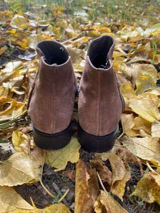 Botines piel ,tacon ante y piel con hebilla,vendo por no poder usar tacon