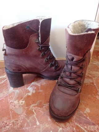 Botines de tacón marrones con borregito por dentro. De piel en perfecto estado. Talla 38.