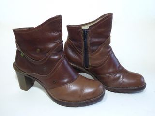 Botines de la marca El Naturalista, talla 37, están confeccionados en piel marrón. Cuentan con un práctico tacón de 6.5 cm y una suela de goma y aislamiento térmico, lo que los hace perfectos para los días de invierno. Se encuentran en muy buen estado. Se venden por poco uso.