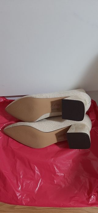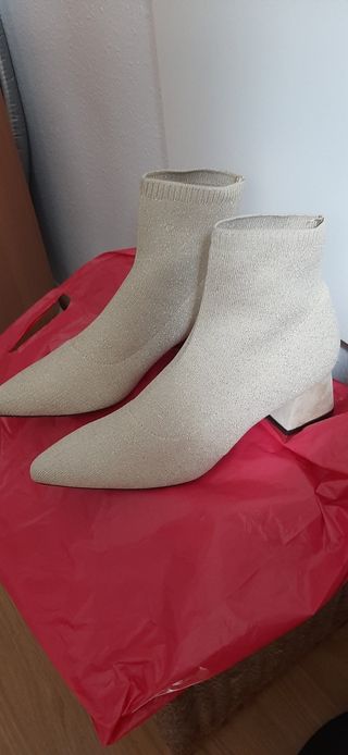 Botines mujer color beig claro, tejido elástico con un elegante brillo. Muy cómodos. Sin estrenar, los vendo por 10€. Costaron más del doble.