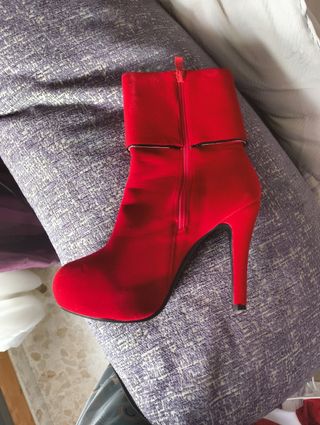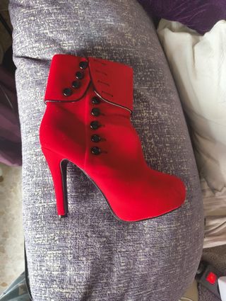 Zapatos de tacón con plataforma,ver foto 3, de suela con desgaste.(Regalo los de color vino tinto,por los rasguños que tiene). - Diseño de botín. - Material tipo ante.