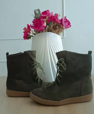 Preciosas botitas color verde oliva, talla 37, sin estrenar. Son de tejido elástico y tienen un diseño elegante y moderno.
