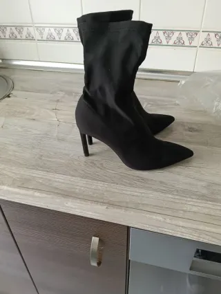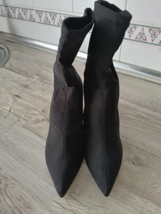 Botines de mujer con un diseño moderno y elegante. Perfectos para complementar cualquier atuendo muy buen estado solo usado una vez - Tacón de bloque transparente. - Punta afilada. - Material elástico tipo calcetín.