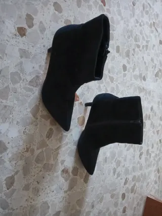 Botines negros de ante, ideales para cualquier ocasión. Son elegantes y cómodos a la vez. - Tacón de bloque. - Cremallera lateral. - Perfectos para usar con vestidos o pantalones.