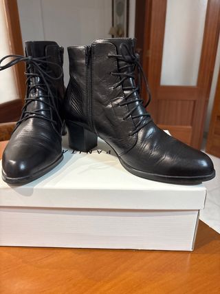 Bonitos botines vintage en piel,color negro de Zara original footwear. Unos botines de calidad y versátiles. Como nuevos, la piel interior y exterior en perfecto estado, sin desgarros ni marcas. (Ver fotos) Número 43 Las fotos sirven de descripción. Si tiene alguna duda me puede preguntar sin compromiso. Envío preferiblemente con Im-post. Los zapatos no tienen devolución, están perfectos.