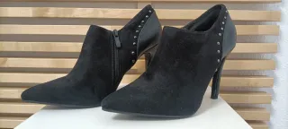 Botines de tacón con un diseño moderno y elegante. - Material exterior de ante. - Detalle de tachuelas metálicas. - Cierre de cremallera lateral.
