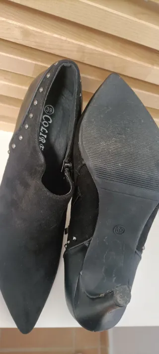 Botines negros de serraje, ideales para el otoño. Son un par de botines elegantes y cómodos. Talla 38. Daniela's. - Material: serraje - Estilo: Botín. - Tacon bajo. Más artículos escribiendo algeral en búsqueda general. Se hacen lotes en conjunto con los otros perfiles.