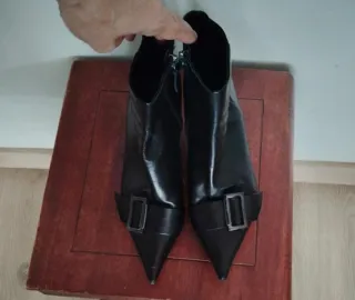 Botín de cuero con un diseño moderno y versátil. - Material: Cuero - Color: Marrón - Tacón grueso - Punta fina medida de tacón : 6 cm envío por correos ordinario o certificado, no tengo cuenta en la app
