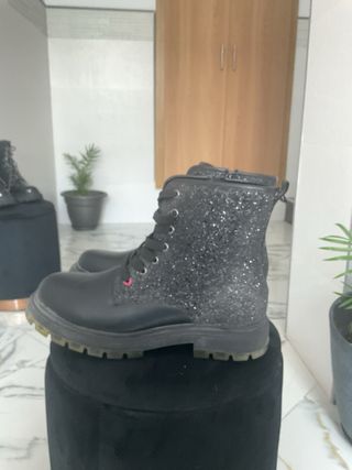 Botas negras con un toque de brillo que las hace destacar. Son nuevas y están listas para estrenar. - Diseño con cordones. - Acabado brillante en la parte superior. Motivo de venta: me las regaló mi tía como regalo pero jamás las usé, son realmente muy cómodas y tienen estilo, pega con cualquier cosa. Pero lo vendo para que me soja solamente espacio y que alguien le de un uso mejor. Son de marca realmente muy buena y algo cara. Son talla 39.