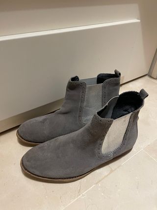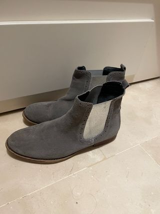 Botines de ante en color gris. - Diseño tipo Chelsea. - Detalle de pespuntes decorativos. - Elástico lateral para facilitar el calce.