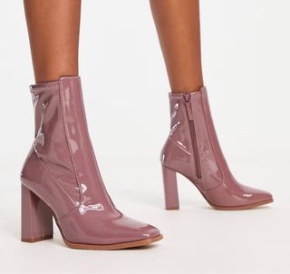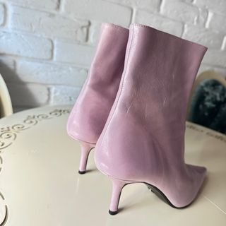 Botines de charol con un acabado brillante. - Diseño de punta afilada. - Cierre de cremallera lateral. Botas de piel auténtica charol color lavanda, talla 40, fabricadas por Zara, nuevas