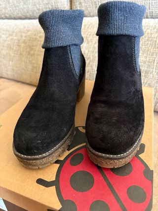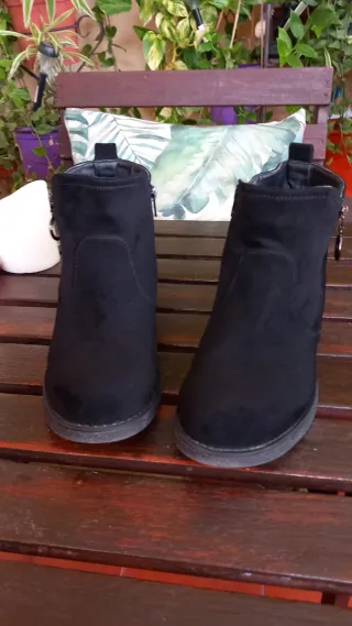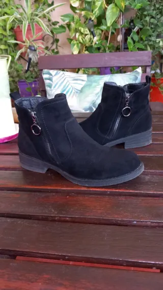 ▶️ ELEGIR ENVÍO POR INPOST Elige varios artículos de mi perfil, y paga sólo un envío Están cómo la primera foto, perfectos y negros, en las demás fotos se ven cómo descoloridos por la luz pero están cómo nuevos Botines de estilo casual. Utilizados 2 veces. Lleva dos cremalleras pero una es decorativa y la otra si se abre para ponértelos. Suela de de goma muy cómodos, cómo ir en zapatillas - Cierre de cremallera lateral. - Material efecto ante
