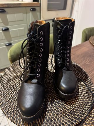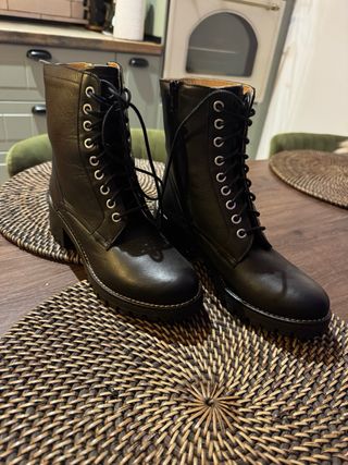 Botines de piel en color negro, talla 37. Son nuevos y sin usar. - Cierre con cordones y cremallera lateral