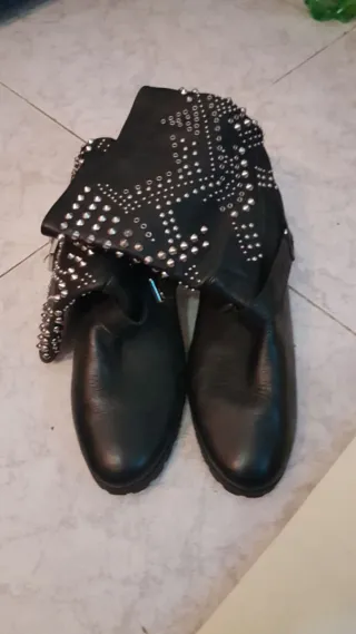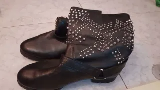 Botines de cuero negro con un diseño llamativo - Detalle de tachuelas plateadas. - Material: Cuero - Sin estrenar Venta en persona ,en Alicante ciudad NO envios