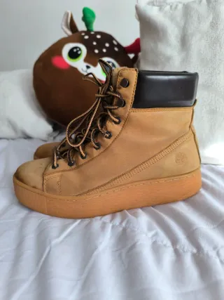 Botas de caña alta Timberland en color beige y con detalles en marrón. - Diseño tipo sneaker boot. - Cierre con cordones. - Suela de goma.