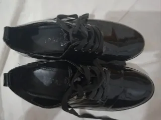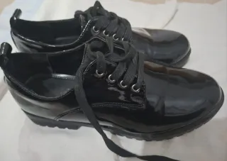Botines bajos de charol con cordones.Tiene algún arañazo pero solo se ven si te fijas mucho. PRECIO NEGOCIABLE - Diseño brillante. - Cierre de cordones. -Cómodos