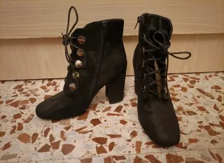 Botines de tacón con un diseño moderno y elegante. Me los he puesto 2 veces nada más. - Material de ante. - Cierre de cordones. - Detalle de botones dorados. - Tacón grueso.