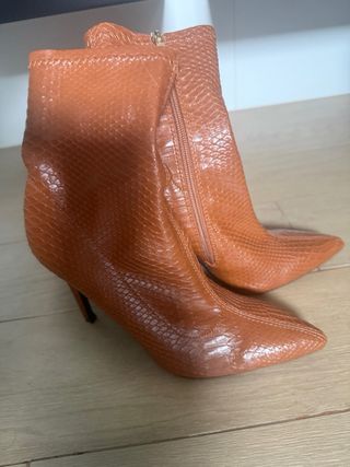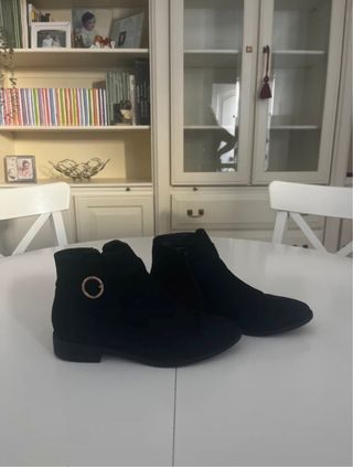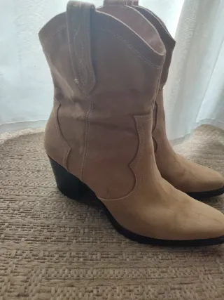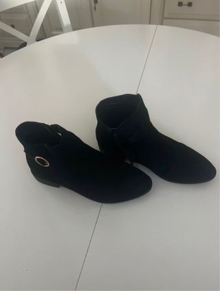 Botines de ante en color marrón. Prácticamente nuevas. Sin ningún desperfecto ya que solo tienen 2 puestas. Su precio original fueron 100