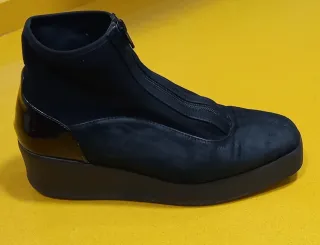 Botines marca Unisa, número 39, de ante y tejido elástico, plataforma de 4cm por detrás y 2cm por delante, usados, pero en buen estado.