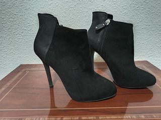 Botines de la marca Azarey, nuevos a estrenar. - Diseño moderno con detalles en ante. - Tacón grueso y suela con relieve. - Cierre de cremallera lateral.