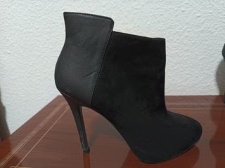 Botines elegantes de tacón alto. Usados solo una vez. - Material: Ante - Diseño: Punta fina - Cierre: Elástico