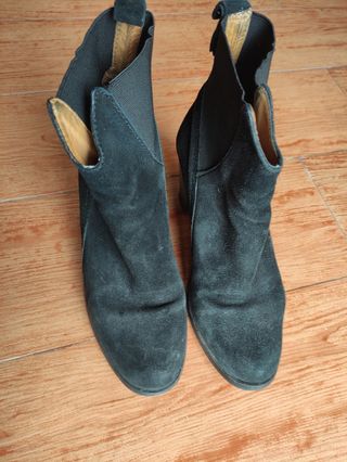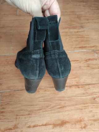 Botines de tacón con un diseño elegante. - Material de ante. - Tacón grueso. - Detalle elástico lateral. - Tirador trasero.