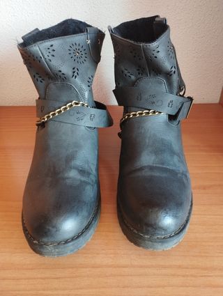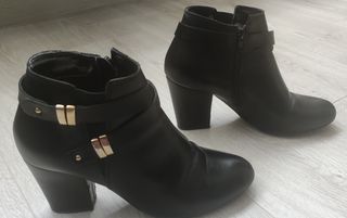 Botines de imitación cuero con tacón medio, aunque marquen una talla 37, dan un 38.