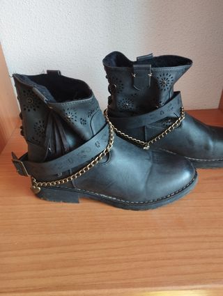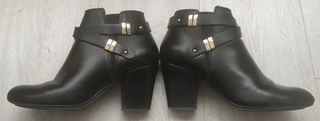 Botines color negro, de piel, con adorno de correa y hebilla, talla 40, prácticamente nuevas. se venden por cambio de talla.